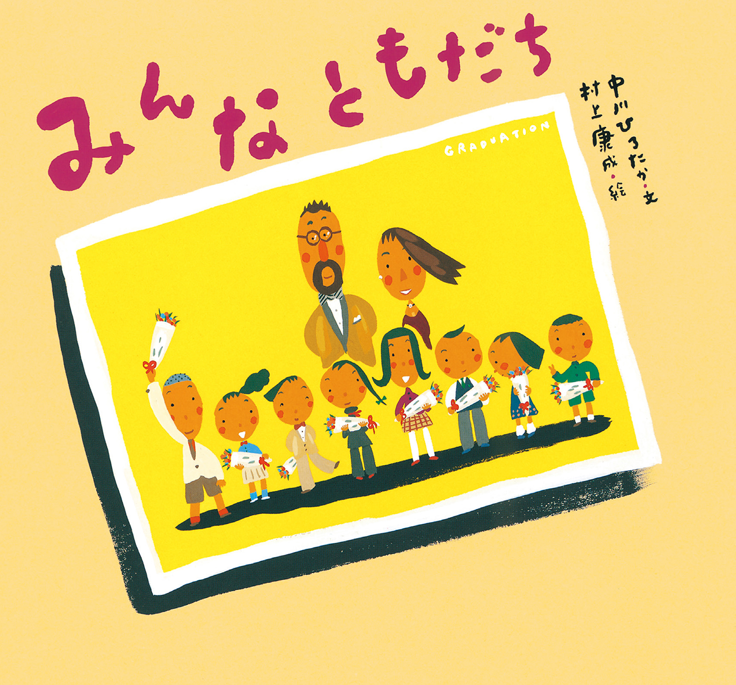 | みんないっしょに うたをうたった。みんないっしょに えをかいた。 みんないっしょに おさんぽした。みんないっしょに おおきくなった。 みんな ともだち ずっとずっとともだち。 がっこういっても ずっとともだち。おとなになっても ずっとともだち。 そつえん、そつぎょうして、はなればなれになって すこしさみしくおもっても だいじょうぶ。みんな ずっとともだちだよ。 そんなふうにはげましてくれるほんです。 そつえん、そつぎょうするみんなにぜひ よんでほしいほんです。 |